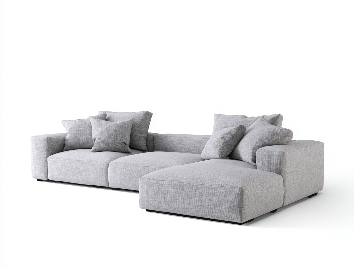 Questo divano angolare in tessuto grigio offre un design moderno e confortevole, ideale per creare una zona relax ampia nel soggiorno.